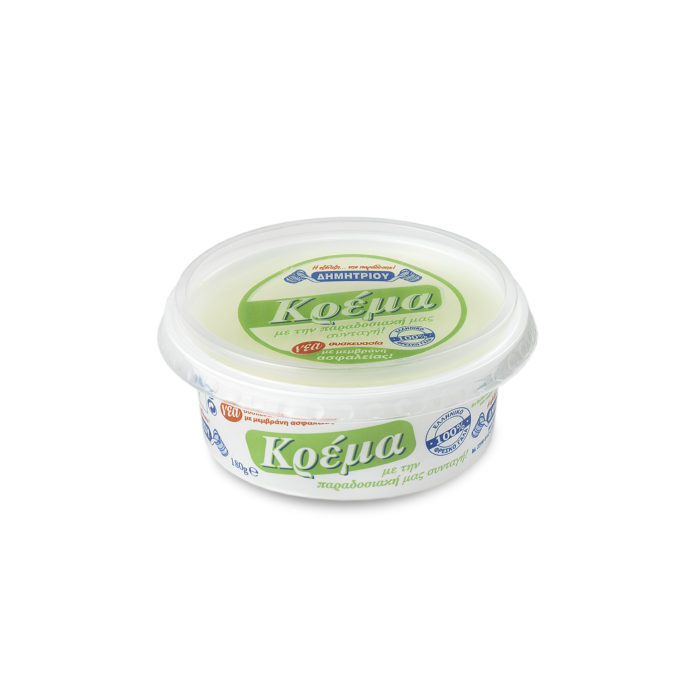 Κρέμα χωρίς γλουτένη σε συσκευασία των 180 γραμμαρίων απο την εταιρία Γαλακτοκομικά Προϊόντα Δημητρίου.