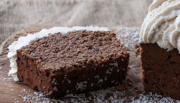 - Μεταφέρουμε όλο το μείγμα σε πυρίμαχο σκεύος και ψήνουμε για 60 λεπτά. Όταν είναι έτοιμο, τρίβουμε από πάνω λίγη κουβερτούρα και το σερβίρουμε χλιαρό.